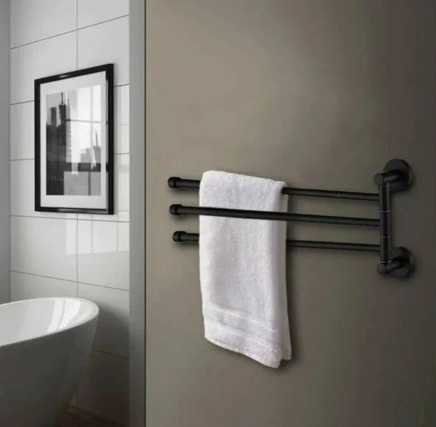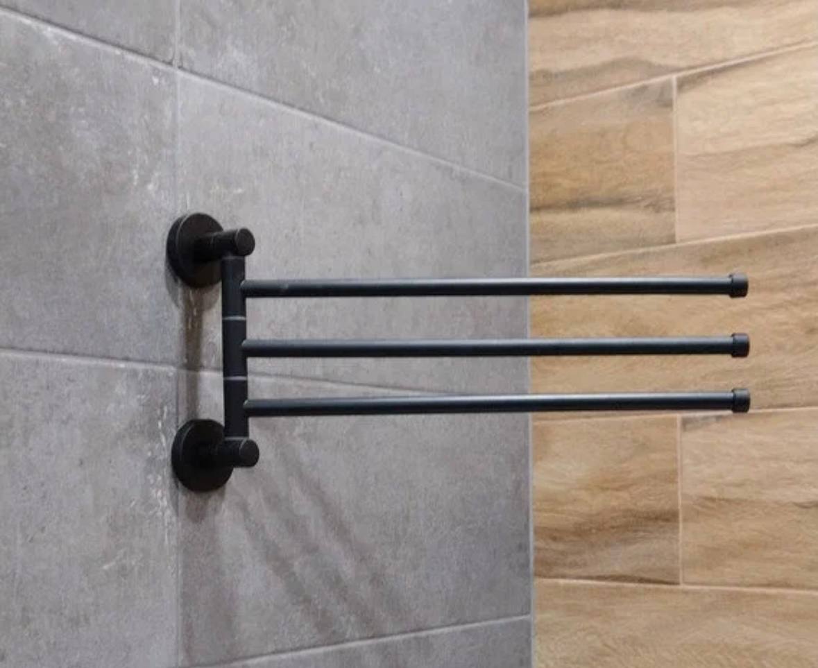 ? Поворотная конструкция с тремя рогами позволяет удобно разместить полотенца, экономя пространство.