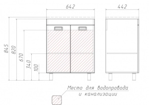 Тумба Cube 65 без ящика под умывальник "Elen 65/Milen 65/Elegante 650" Домино
