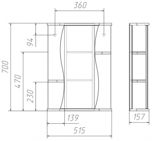 Зеркало-шкаф Волна 2-50, правая АЙСБЕРГ