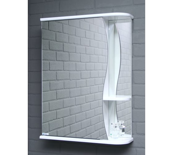 Шкаф – зеркало волна 2-50, 2-55, 2-60 в левом и правом исполнении, имеет по бокам полки.