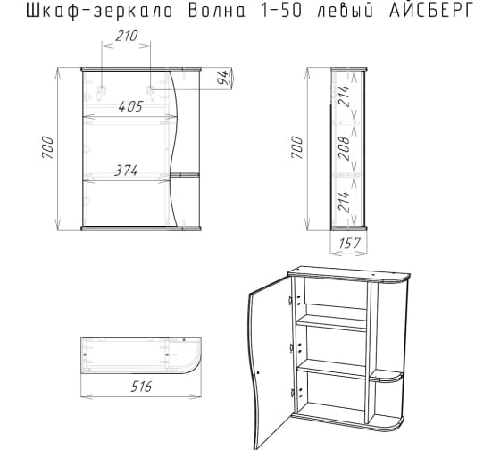 Зеркало-шкаф Волна 1-50 левый АЙСБЕРГ (ДС8)