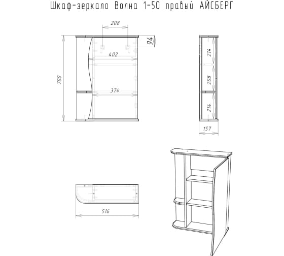 Зеркало-шкаф Волна 1-50 правый АЙСБЕРГ