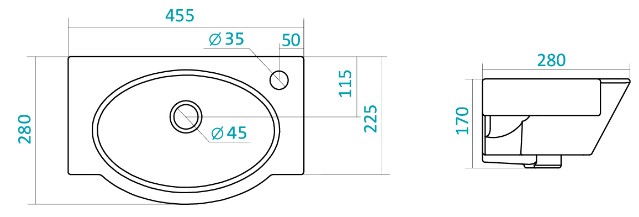 Раковина Santek Форум 45 отверстие под смеситель слева