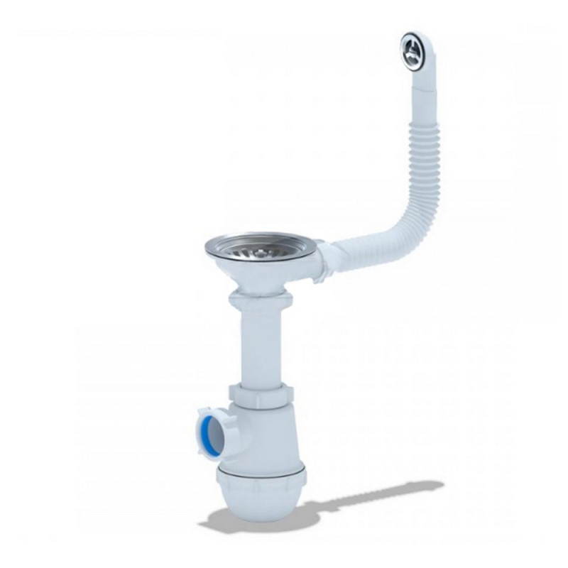 Сифон для кухонных моек с диаметром сливного отверстия 90мм, бутылочного типа с увеличенным корпусом. С разборным выпуском и нержавеющей решеткой, с гибким круглым переливом для моек из композитных материалов. Выход для подключения к канализации 40ммХарактеристики