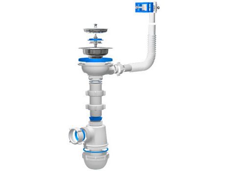 Сифон для кухонных моек с диаметром сливного отверстия 90мм, бутылочного типа с увеличенным корпусом. С разборным выпуском и нержавеющей решеткой, с гибким прямоугольным переливом для моек из нержавеющей стали. Выход для подключения к канализации 40ммХарактеристики