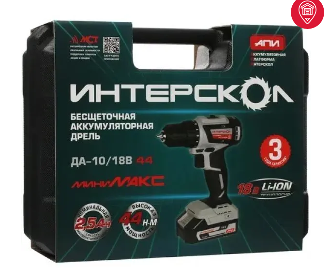 Дрель-шуруповерт аккумуляторная ДА-10/18В (Li-ion АПИ, кейс, 2АКБ 2,5Ач, ЗУ, бесщеточ.) ИНТЕРСКОЛ