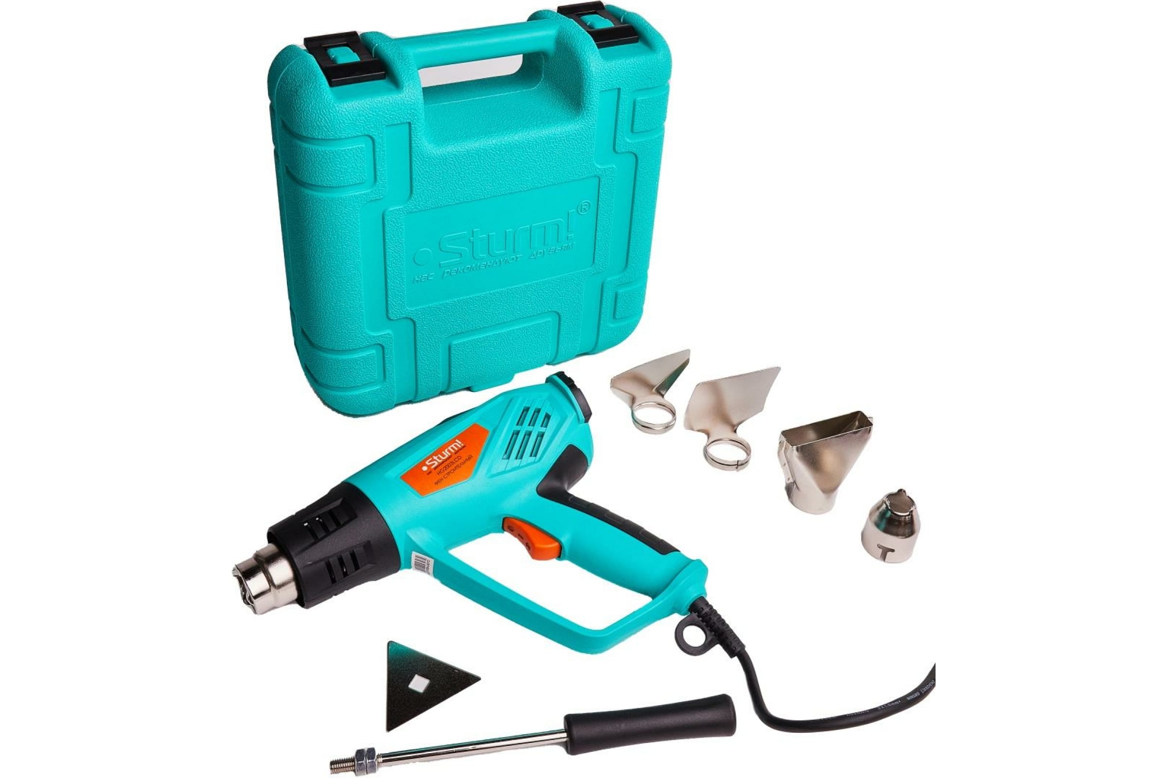 Фен строительный HG2003LCD (2000Вт, 2 темп. диап, 6 реж. потока, ЖК дисплей, 5 насадок, кейс) STURM