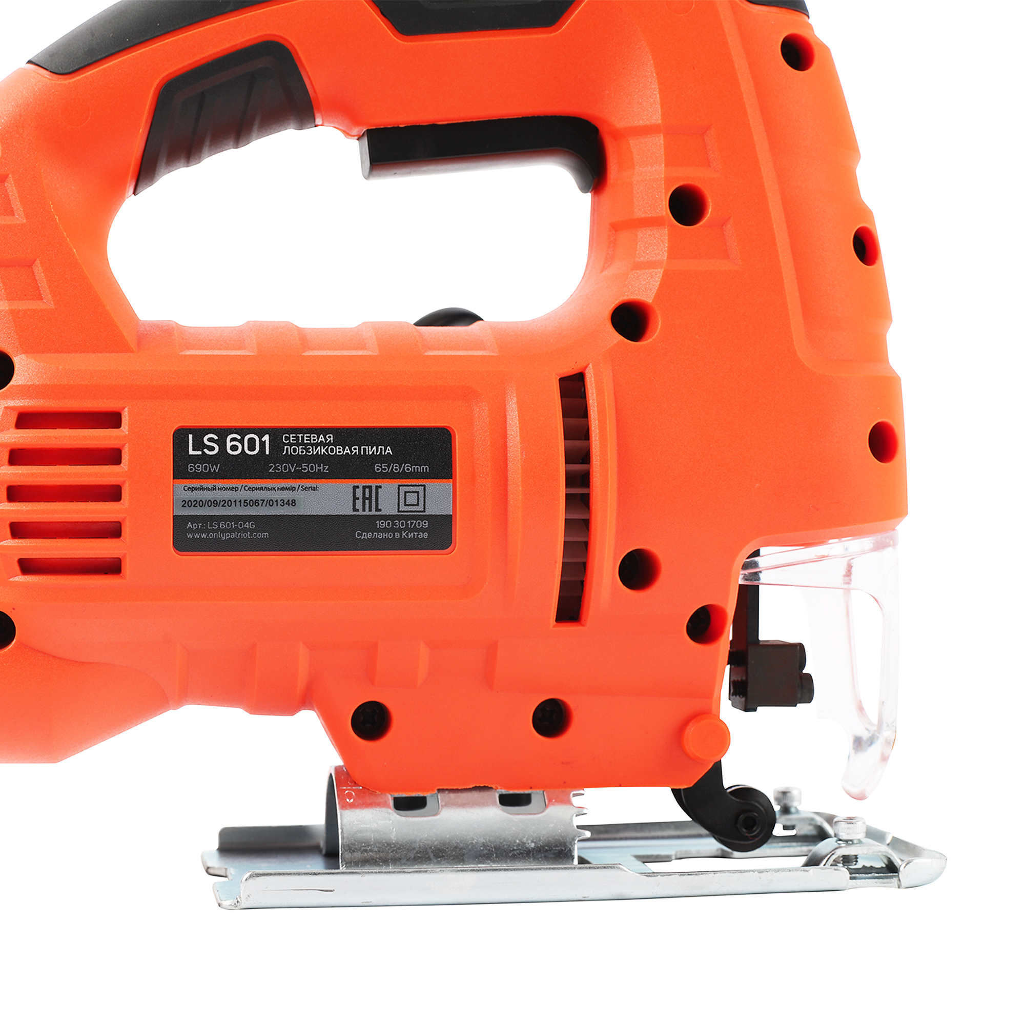 Лобзик PATRIOT LS 601 The One, мощность 690 Вт, макс толщина дерева 65мм, 4 поз. маятниковый ход, быстрая смена пилки, регулировка скорости