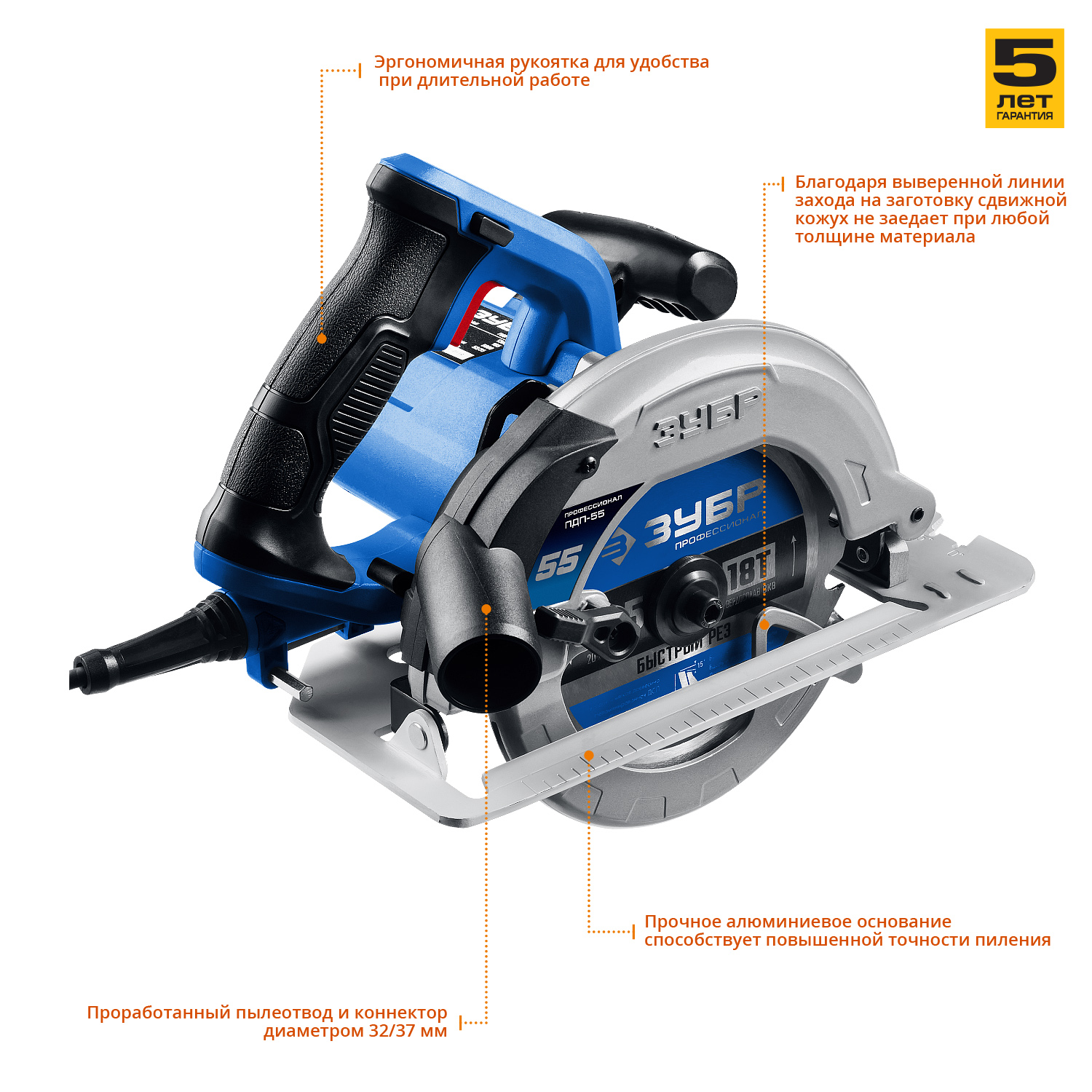 Пила циркулярная ПДП-55 (1300 Вт, диск 165 мм, 5000 об/мин) Профессионал ЗУБР