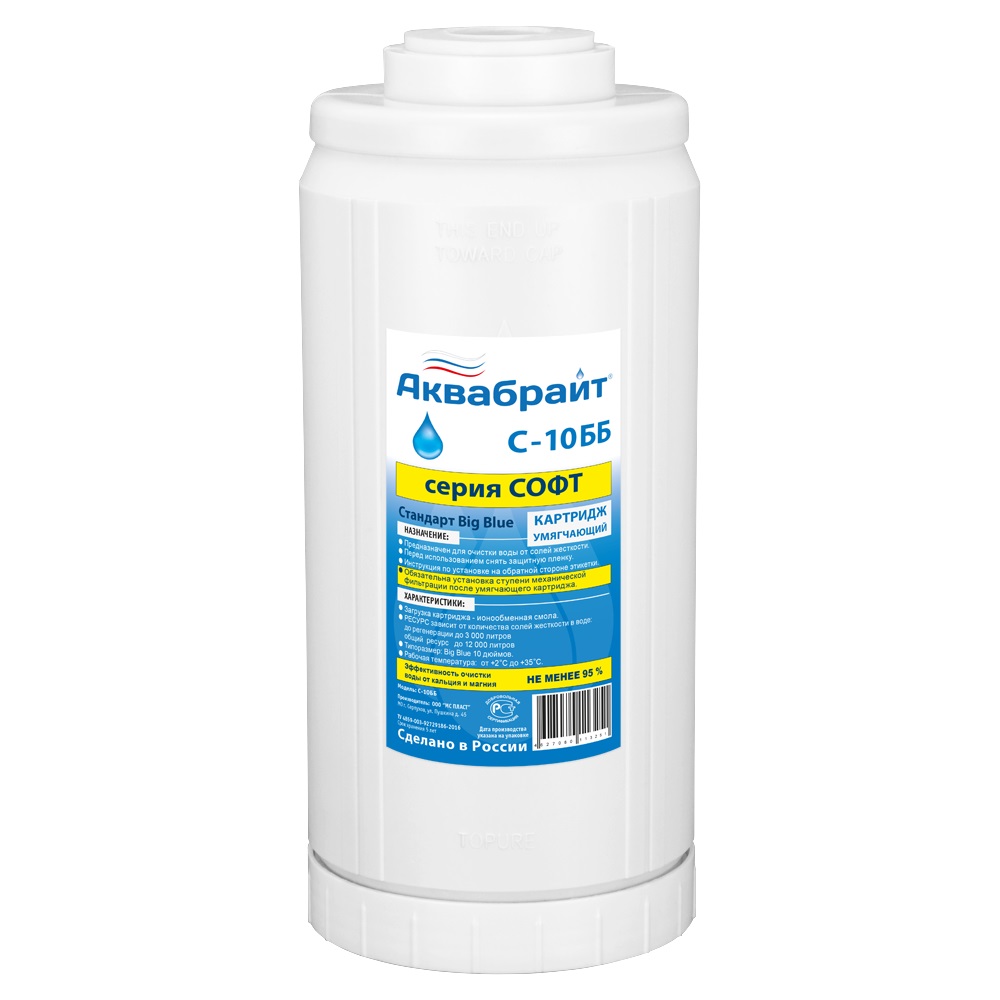 Картридж АКВАБРАЙТ C-10 ББ с наполнителем из ионообменной смолы. Возможна регенерация с помощью пищевой поваренной соли.Назначение: