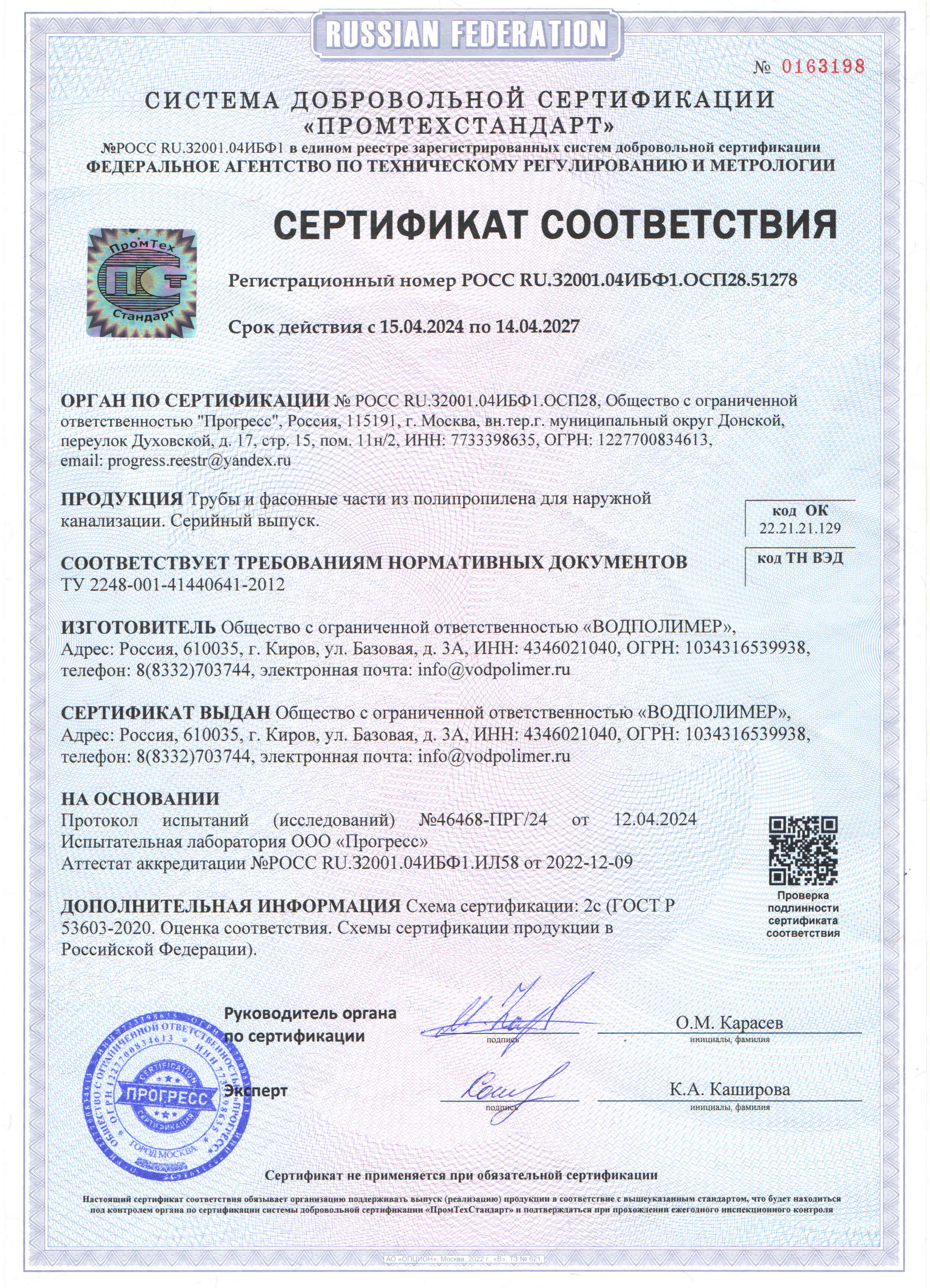 Описание продукции. Труба состоит из трех слоев, изготовленных методом соэкструзии. Наружный и внутренний слой состоят из блоксополимера пропилена оранжевого цвета, средний слой из блоксополимера пропилена черно-серого цвета, наполненного модификатором ударопрочности. Три слоя полимера в процессе соэкструзии образуют монолитную трубу. Основные преимущества перед однослойной трубой: 1) За счет трехслойности увеличивается кольцевая жесткость трубы от 5 до 10%, в зависимости от диаметра и толщины стенки; 2) Благодаря использованию наполнителей повышается ударопрочность трехслойной трубы; 3) Трехслойная труба обладает более высоким коэффициентом шумопоглощения; Техническая характеристика труб. Трубы для наружной безнапорной канализации выпускаются также двух типоразмеров: ? 110 мм со стенкой 3,4 мм и ? 160 мм со стенкой 4,9 мм. Цвет: оранжевый. Номинальное давление – 0,5 атм. Рабочая температура – кратковременно до 95 ° С. Трубы длиной 0,15; 0,25; 0,5; 0,75м упаковываются в специальные пластиковые кассеты. Трубы комплектуются уплотнительными одно — и двухлепестковыми кольцами немецких фирм Bode и Mol.