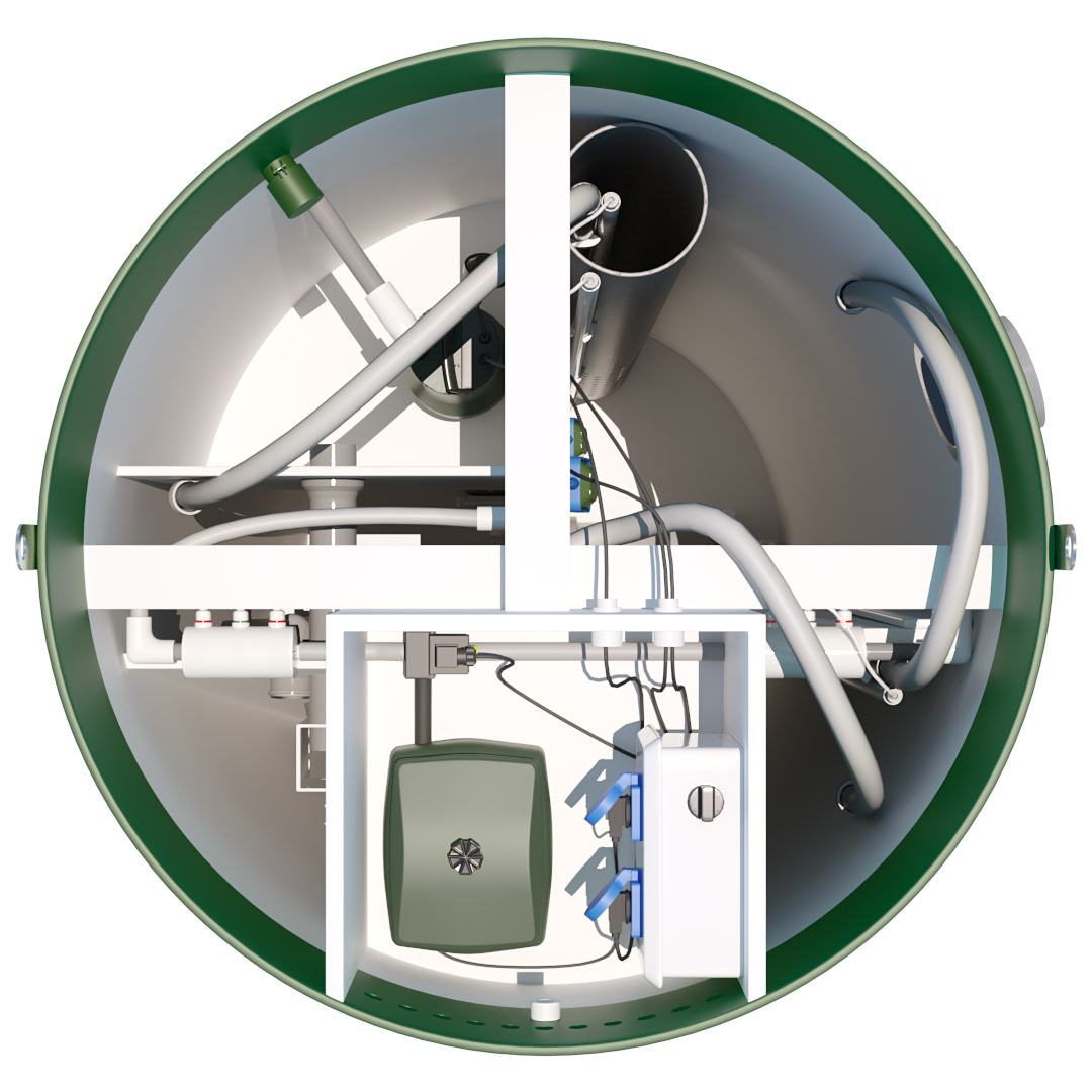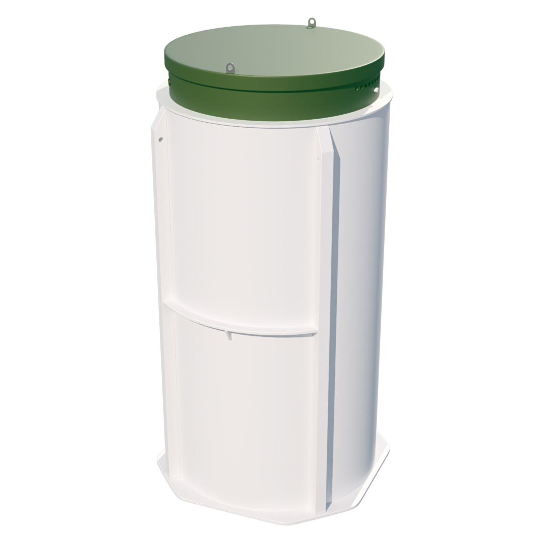 Корпус станции выполнен из прочного полипропилена, устойчивого к коррозии и морозам, с расчётным сроком службы более 50 лет. Конструкция обеспечивает тихую работу, простое обслуживание и редкую откачку ила — 1 раз в 1–2 года.