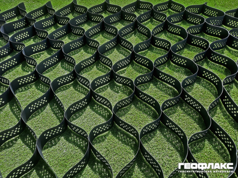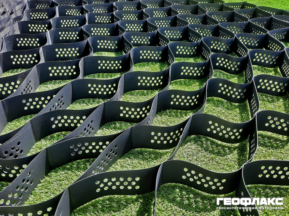 Георешетка объемная пластиковая 100 мм 220x220 1,25 мм П "Геофлакс" (рулон 16,25 м)