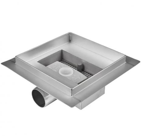 Трап-лоток горизонтальный с сухим гидрозатвором под кладку плитки 15 см квадрат TIM BAD451502
