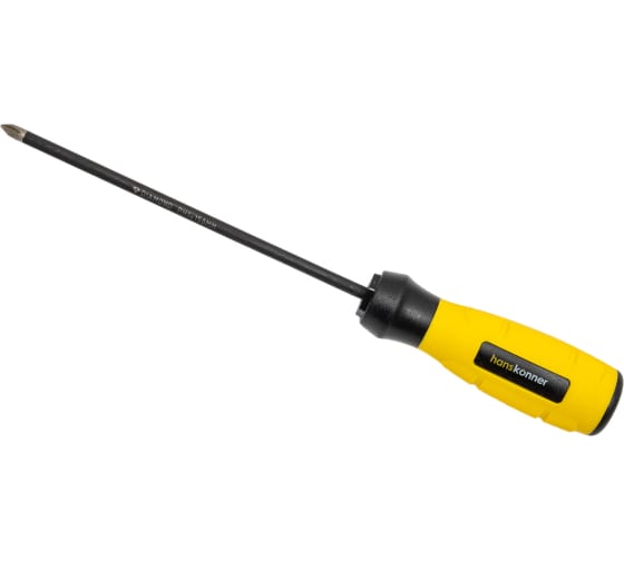 Крестовая отвертка Hanskonner1x150 алмазный наконечник, твердость 59 HRC, S2, HK1040-16-PH1-150 подходит для работы со сложным и прочным крепежом. Инструмент оснащен нестираемым наконечником, поэтому можно прикладывать больше усилий.Рукоять имеет специальный профиль для удобства вращения. Ладонь не соскальзывает при работе - меньше риск получить травму.