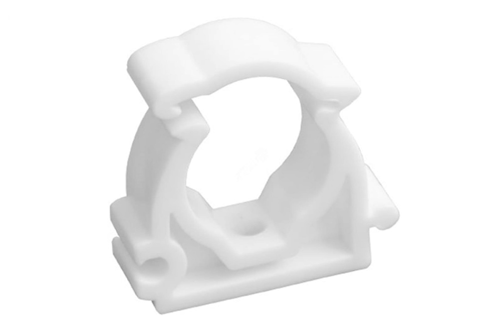 (VT.KP.F) Пластиковый кронштейн с фиксатором, предназначенный для крепления труб.Выполнен из высококачественного первичного полипропилена.