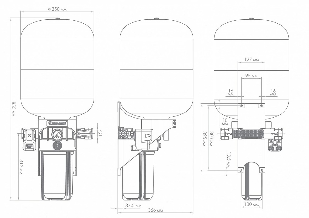 манометр и реле давления на лицевой стороне;