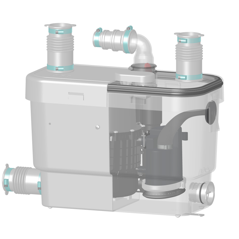 Эта модель отличается надежностью, простотой установки, практичностью. Одного насоса хватит для откачивания стоков от кухни, прачечной или ванны. Модель компактного размера и возможно разместить его в кухонном шкафу или под мойкой. Этот вариант подходит даже для совсем небольшого дачного дома или квартиры. Мощность двигателя 400 Вт и допустимая температура использованных вод до 75 °С (короткие периоды). Откачивать стоки насос может на значительное расстояние: до 70 метров по горизонтали и до 7 метров по вертикали. Sanispeed имеет международные сертификаты качества и при этом доступен по цене. Это простое и эффективное решение для оборудования комфортабельной кухни, прачечной или ванной комнаты в любом удобном для вас месте.