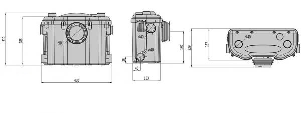 Санитарный насос, для отвода из унитаза, раковины и душ(ванны)Мощность: 450Вт., подъем до 8 метров, максимальная производительность 145л/мин.