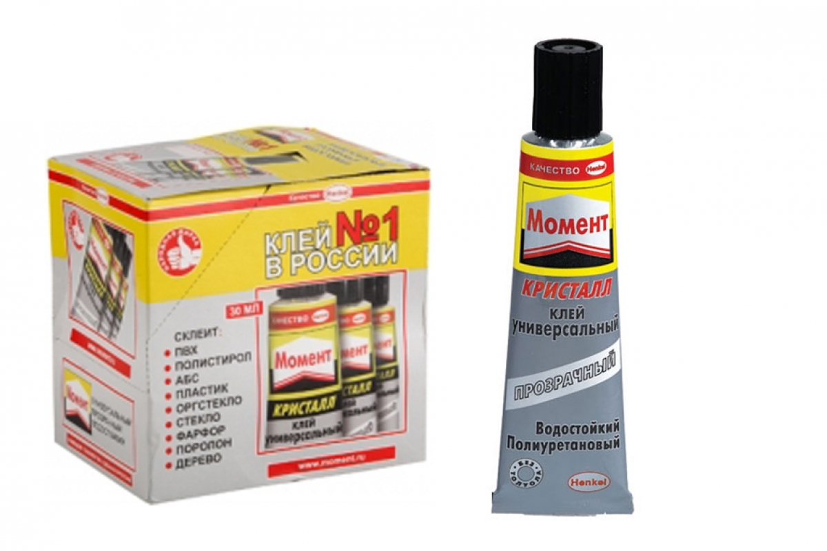 Клей Кристалл Момент является полиуретановым и предназначен для склеивания следующих материалов: мягкого и жесткого поливинилхлорида, полистирола, оргстекла и других пластиков. Можно склеивать в различных сочетаниях дерево, металл, резину, бумагу, картон, кожу, ткань, пробку, поролон, фарфор, керамику, стекло. Шов получается высокопрочным и водостойким. Нельзя использовать для посуды, контактирующей с пищей. Необходимо хранить при температуре о -20?С до +30?С. Если клей замерз, то свои свойства он восстановит при комнатной температуре. Поставляется на блистере. Срок годности — 24 месяца.Отзывы