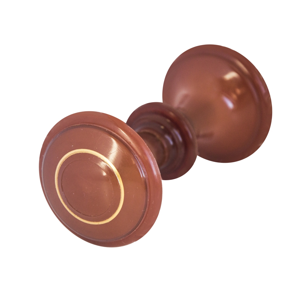 Ручка-кнопка дверная. Материал - пластик. В комплекте соединительный штырь-винт длиной 100 мм. В центре ручки окантовка в виде золотого кольца.Характеристики