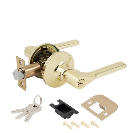 Ручка-защёлка для межкомнатных дверей с ключом и фиксатором 8083-01-G золотой Avers