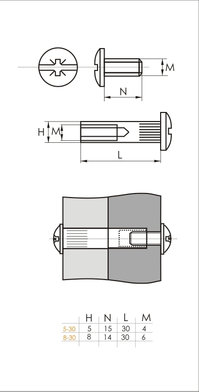 Стяжка межсекционная используется для сращивания деталей из ЛДСП и МДФ, а также для скрепления между собой отдельных модулей корпусной мебелиХарактеристики