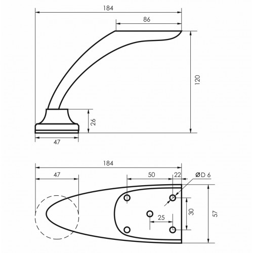 Опора для мягкой мебельная 120мм гнутая 1,2мм хром