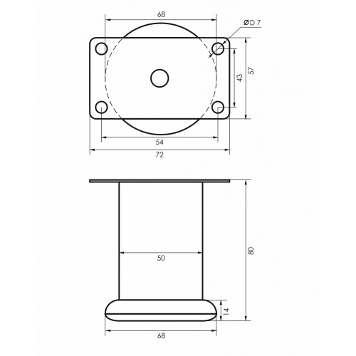 Опора мебельная 50х80мм (В-140) 0,6мм хром