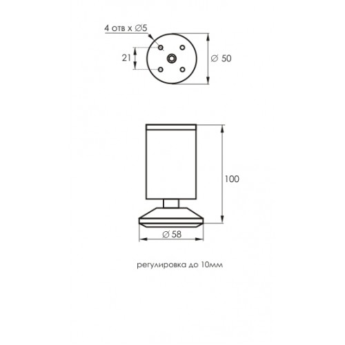 Опора мебельная регулируемая 001А (50*100) алюминий, матовый хром (10/100; 10702070/221218/0199374, КИТАЙ)