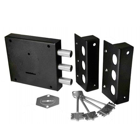 Замок накладной сувальдный. Предназначен для установки на металлические двери. Засов из трех цилиндрических ригелей диаметром 16 мм, с максимальным вылетом 30 мм. Удаление ключевого отверстия - 70 мм. Комплектация - 4 ключей, торцевая планка, накладка.Отзывы