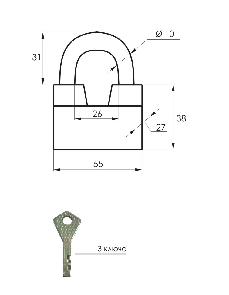 Замок навесной используется для запирания помещений. Материал корпуса - сплав, дужка - закаленная сталь. Запирание с помощью ключа. Простой и надежный в эксплуатации.Отзывы