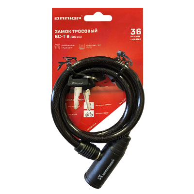 Замок навесной с тросом. Материал корпуса - сталь в пластиковом кожухе. Стальной трос- в пластиковой оплетке (8мм - диаметр, 800мм - длина). Цилиндровый механизм секрета, в комплекте 2 английских ключа.Предназначен для запирания дверей, ворот, а также для предотвращения хищения велосипедов, детских колясок, санок, лодочных моторов и др. предметовОтзывы