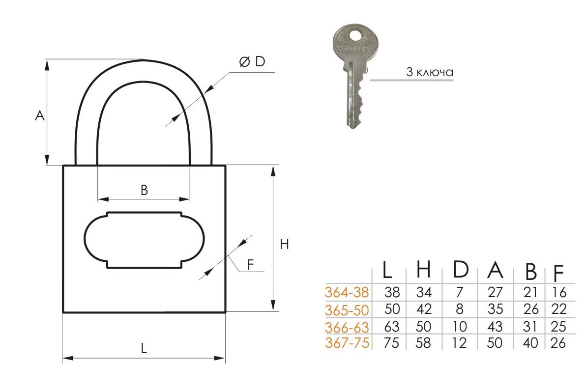 Замок навесной 364-38HG глянцевый SOLLER