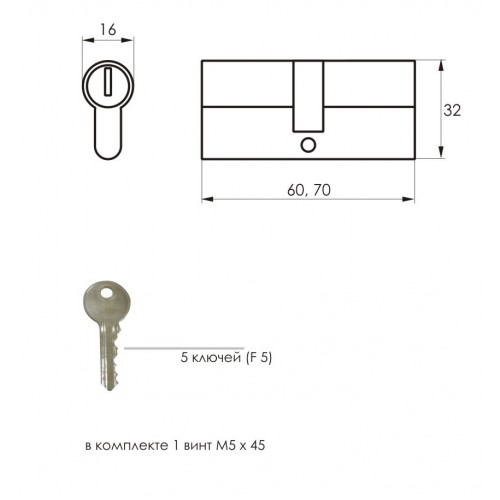 Механизм цилиндровый F5 золото (70мм, 5 ключей) Zn.S SOLLER