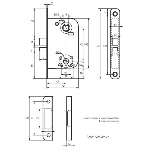 72мм 8мм хром замок врезной SOLLER ключ/флажок с ответной планкой (2014) /60,5/ (5/60; 10702030/141013/0076117, КИТАЙ)