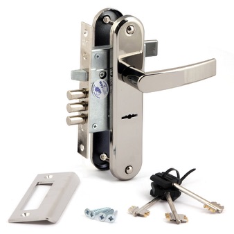 Замок врезной 8-сувальдный с защелкой и фалевыми ручками. Предназначен для установки в двери толщиной 40-50 мм. Замок универсальный, его можно устанавливать как в правые, так и в левые двери, переустановив защелку. Комплектуется 3/5 стальными ключами. Покрытие корпуса — цинковое. Покрытие лицевой и ответной планок — никелевое. Замок имеет защиту от высверливания. Изготовлен из высокопрочных материалов. Имеет защитное покрытие.Механизм замка 8-сувальдный 250000 секретов