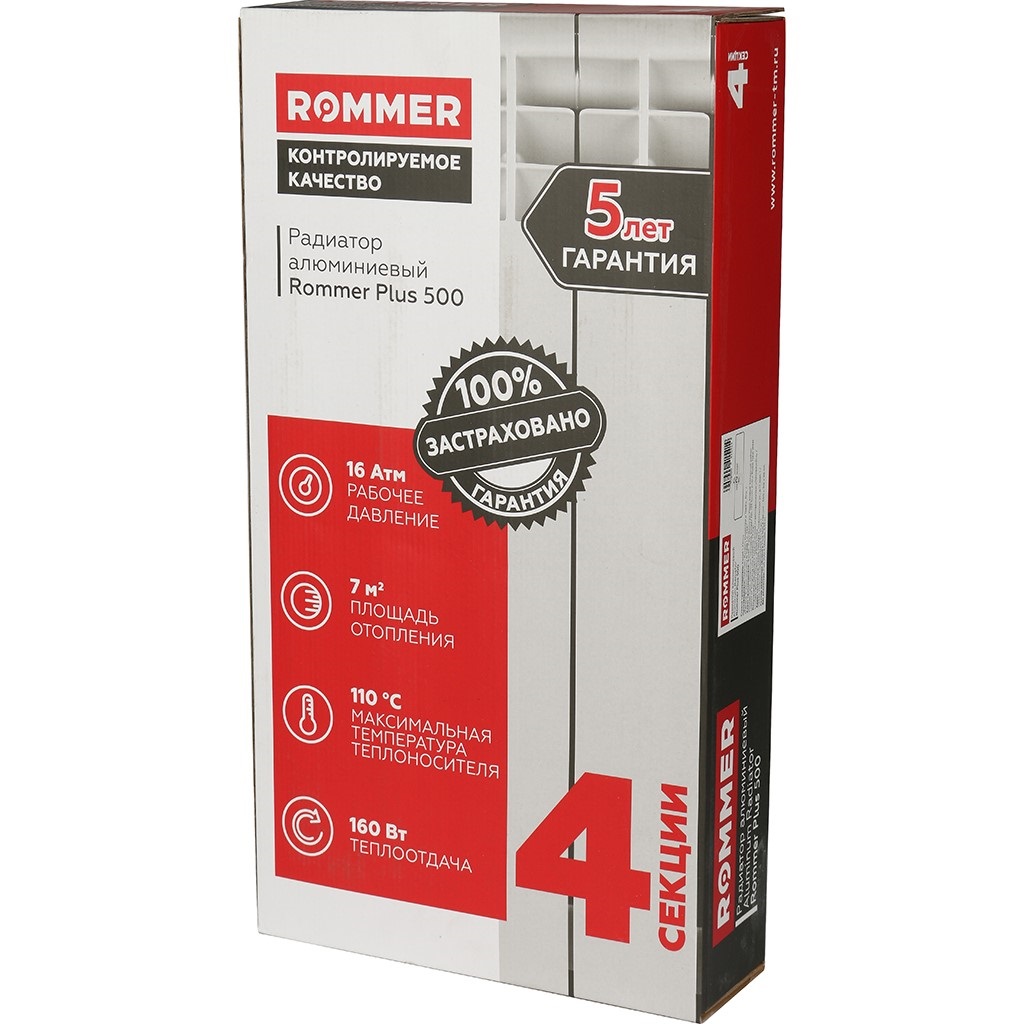 Радиатор алюминиевый ROMMER Plus 500/100/4?? Алюминиевые радиаторы Rommer, созданные посредством давления при литье, представляют собой оптимальное решение для систем отопления в частных домах. Благодаря высоким теплопроводным свойствам алюминия, эти радиаторы обеспечивают максимальную теплоотдачу. Эти устройства отопления были специально разработаны для эксплуатации в условиях России и соответствуют ГОСТ 31311-2005.