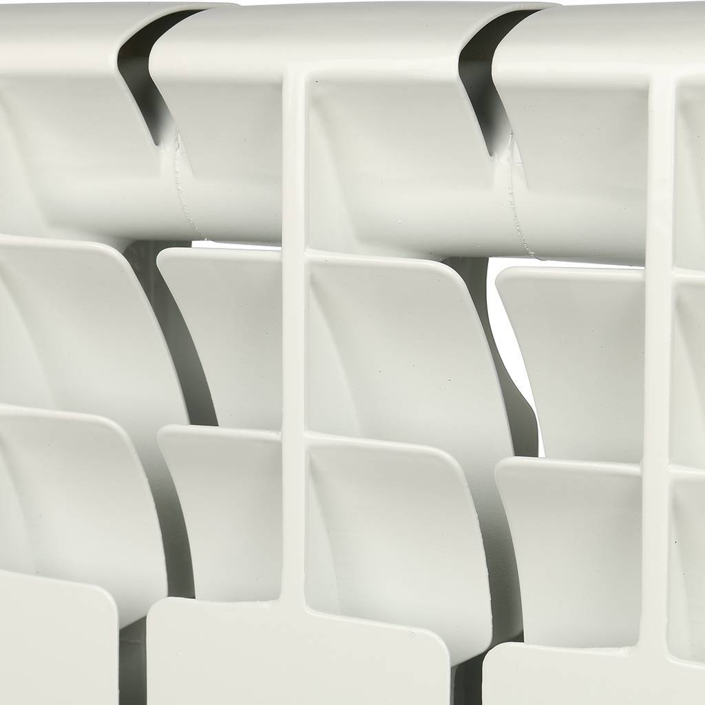 Биметаллические радиаторы повышенной мощности, могут эксплуатироваться как в центральных так и в индивидуальных отопительных системах, в условиях использования агрессивных сред. В качестве хладоносителя допустимо применение воды и незамерзающей жидкости с водородным показателем (pH) от 6,5 до 9. Коллектор биметаллических отопителей, полностью изготовленный из коррозиестойкой стали, является сваренной конструкцией, состоящей из продольных и поперечных трубчатых элементов, которые затем заполняются алюминиевым сплавом под высоким давлением. Этот инновационный подход позволяет создавать изделия с коэффициентом теплопроводности, превышающим величину, характерную для радиаторов, полностью изготовленных из алюминия.