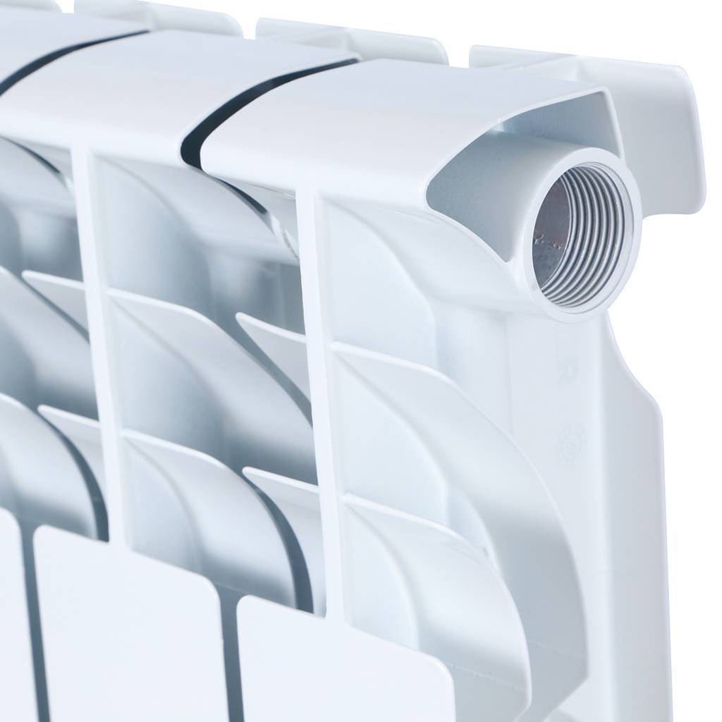 Биметаллические радиаторы повышенной мощности, могут эксплуатироваться как в центральных так и в индивидуальных отопительных системах, в условиях использования агрессивных сред. В качестве хладоносителя допустимо применение воды и незамерзающей жидкости с водородным показателем (pH) от 6,5 до 9. Коллектор биметаллических отопителей, полностью изготовленный из коррозиестойкой стали, является сваренной конструкцией, состоящей из продольных и поперечных трубчатых элементов, которые затем заполняются алюминиевым сплавом под высоким давлением. Этот инновационный подход позволяет создавать изделия с коэффициентом теплопроводности, превышающим величину, характерную для радиаторов, полностью изготовленных из алюминия.
