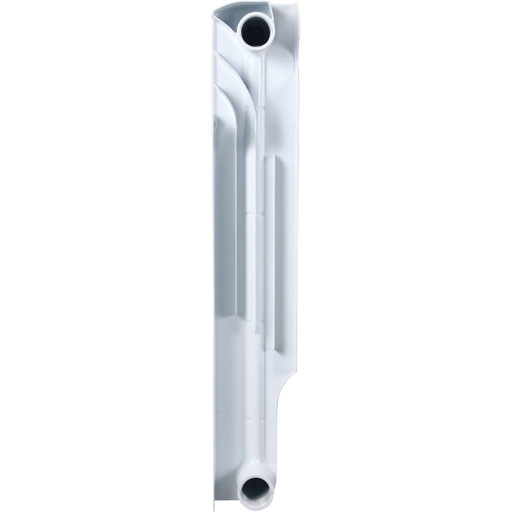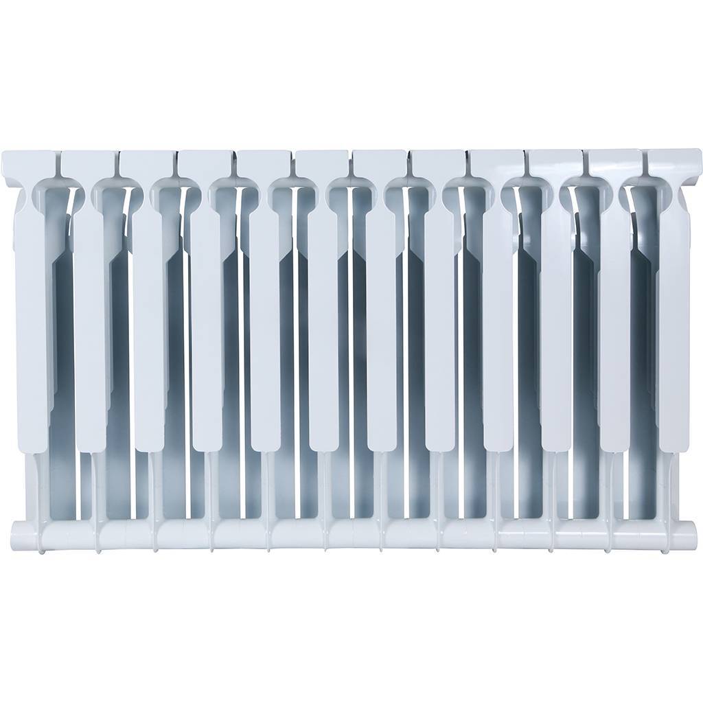 Биметаллические радиаторы повышенной мощности, могут эксплуатироваться как в центральных так и в индивидуальных отопительных системах, в условиях использования агрессивных сред. В качестве хладоносителя допустимо применение воды и незамерзающей жидкости с водородным показателем (pH) от 6,5 до 9. Коллектор биметаллических отопителей, полностью изготовленный из коррозиестойкой стали, является сваренной конструкцией, состоящей из продольных и поперечных трубчатых элементов, которые затем заполняются алюминиевым сплавом под высоким давлением. Этот инновационный подход позволяет создавать изделия с коэффициентом теплопроводности, превышающим величину, характерную для радиаторов, полностью изготовленных из алюминия.