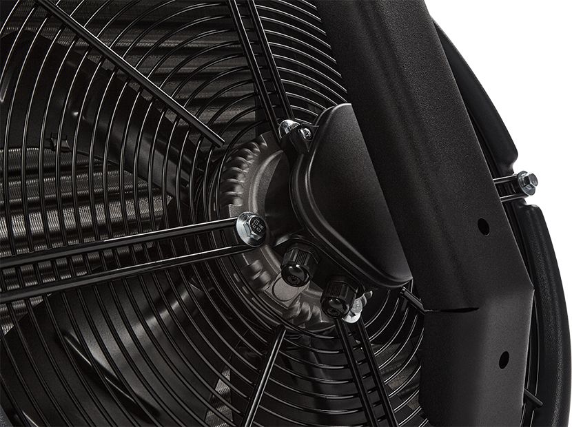 Осевой вентилятор диаметром 450 мм создает воздушный поток длиной 22 метра и обеспечивает максимальную производительность до 4400 м?/ч.