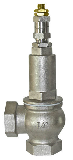 Клапан предохранительный регулируемый, с возможностью ручного открытия 1-12 бар 1/2 внутренняя резьба. (тефлоновая прокладка)