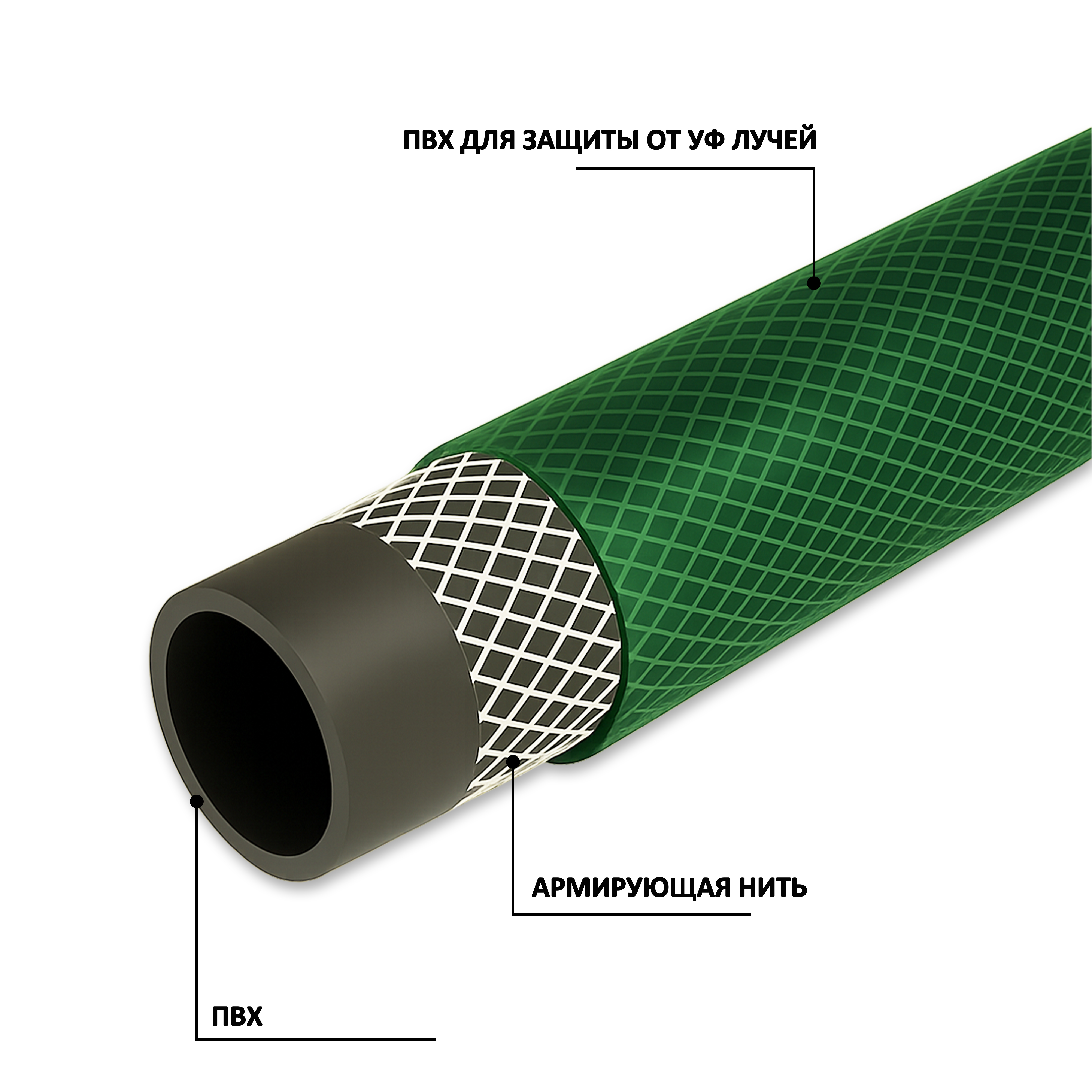 3-х слойный шланг из ПВХ для общего применения.Шланг садовый облегченный, для менее требовательного использования. Шланг гибкий. Защита от УФ присутствует. НЕ содержит вредных веществ (Cd - кадмий, Ba-барий, Pb - свинец). Режим эксплуатации от 0 до +40. Стойкий к воздействию щелочных средств для очистки и дезинфицирующих средств.