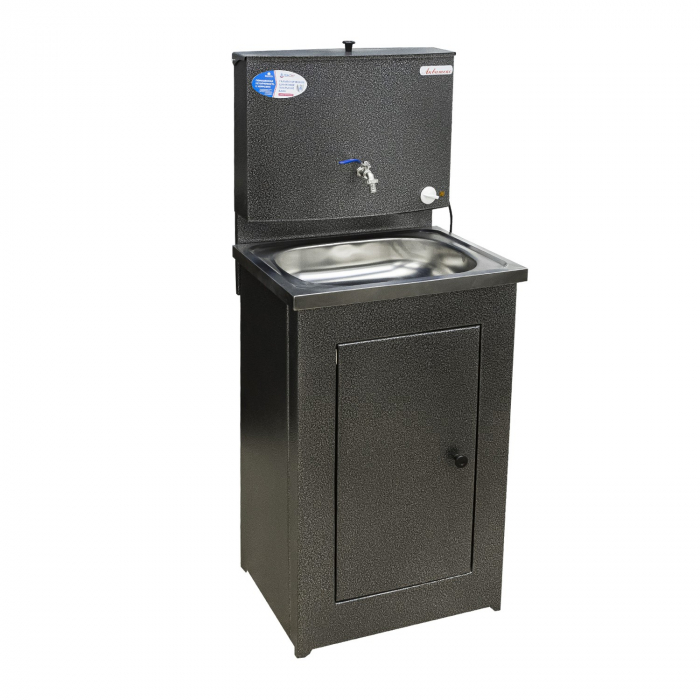 Умывальник дачный в коробе 500х450 серебро (ЭВН-20л + мойка нерж) металл Акватекс