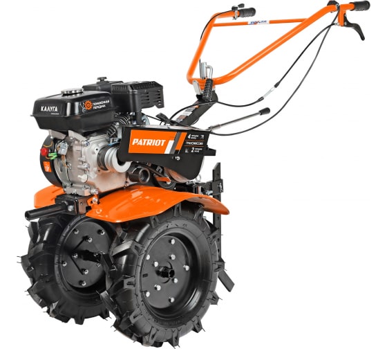 Бензиновый мотоблок PATRIOT КАЛУГА пониженная передача, 4 вперед/2 назад 440107010 используется для возделывания почвы на сельскохозяйственных участках.Большие пневматические колеса с агрессивным протектором гарантируют хорошую проходимость по бездорожью.
