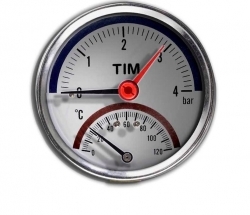 Термоманометр аксиал. (задн.подкл) с авт. запор. клап. Корп. Dn 80 мм, 1/2", 0-4 bar, 0-120°С, TIM