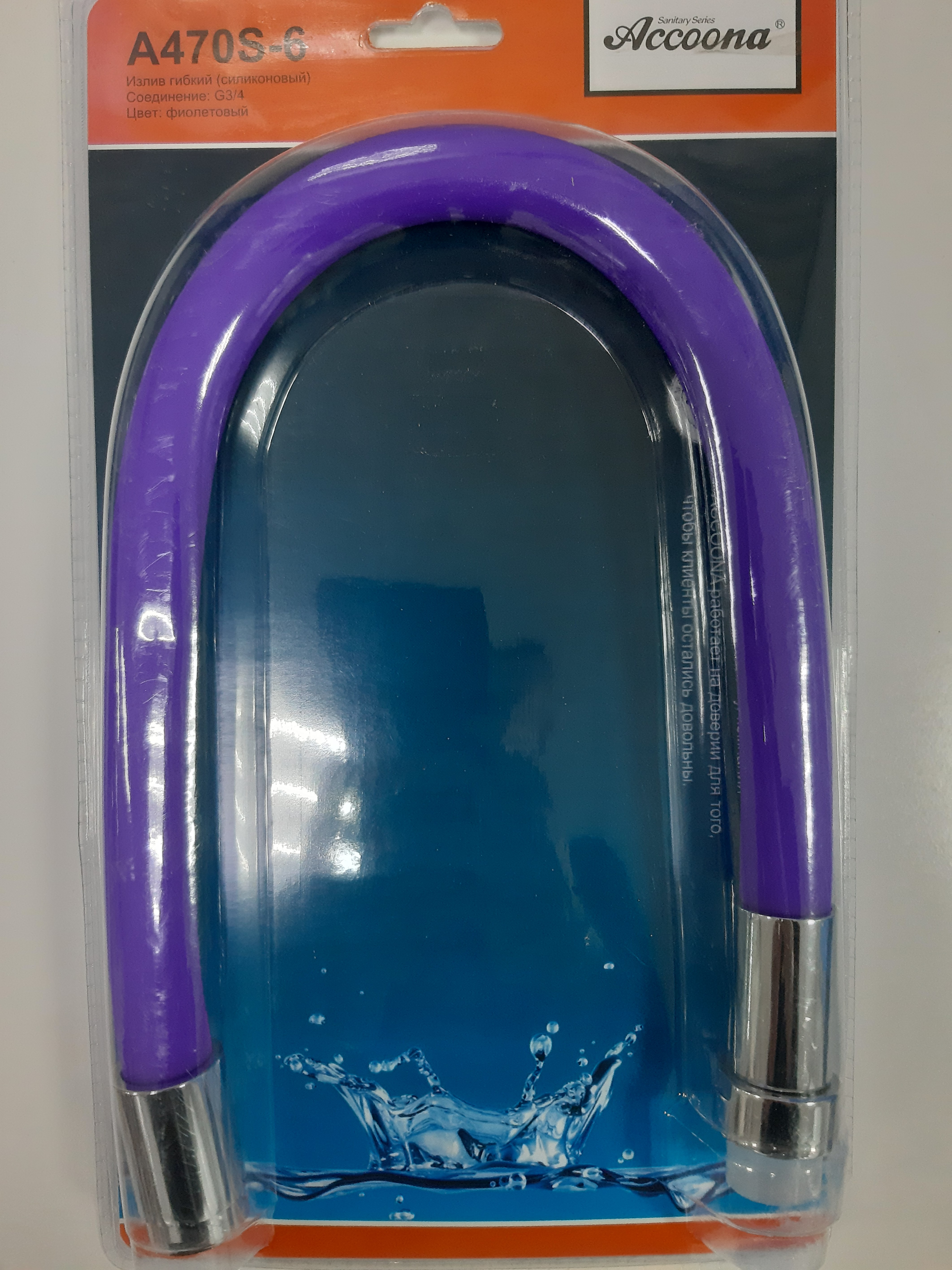 Излив гибкий силиконовый 3/4 Фиолетовый блистер Accoona A470S-6