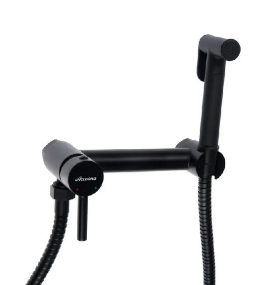 Смеситель для биде с гигиенической лейкой шаровый встраиваемый Латунь Черный Accoona A3290F-2