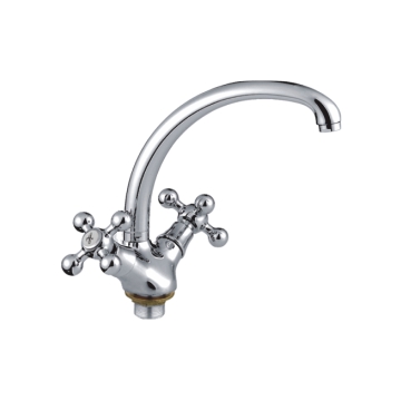 Смеситель кухня на гайке крест толстый гусак Силумин Хром Accoona A4071